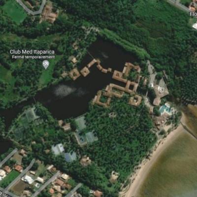Vue aérienne du Club Med Itaparica, l’un des meilleurs complexes de luxe de Bahia, il y a des années.